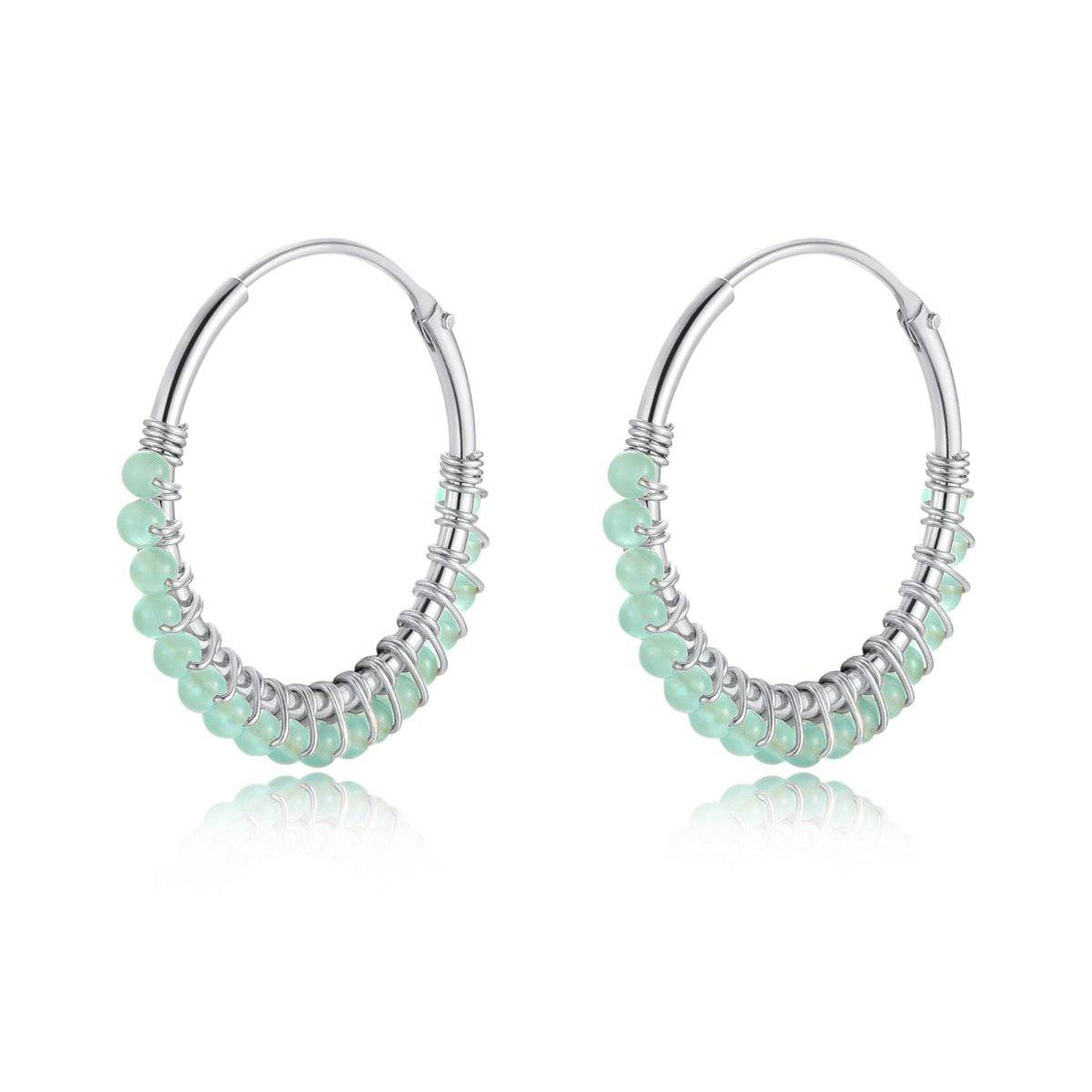 Hoop earrings decorated with small balls, available in two colorful versions, made of sterling silver (S925).