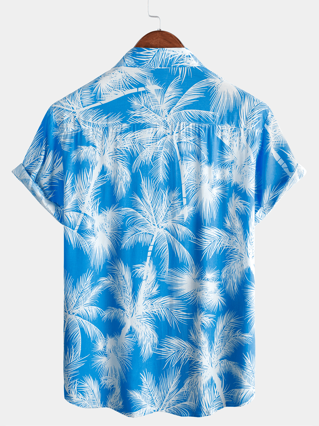 Men's Blue Tropical Print Beach Short Sleeve Shirt