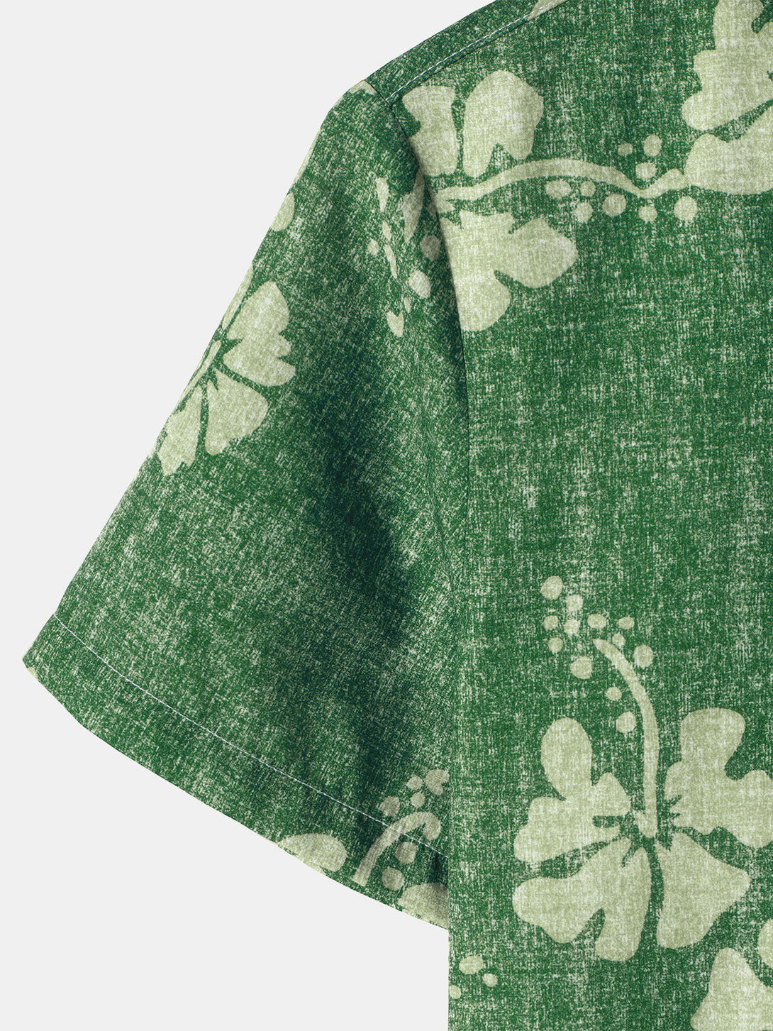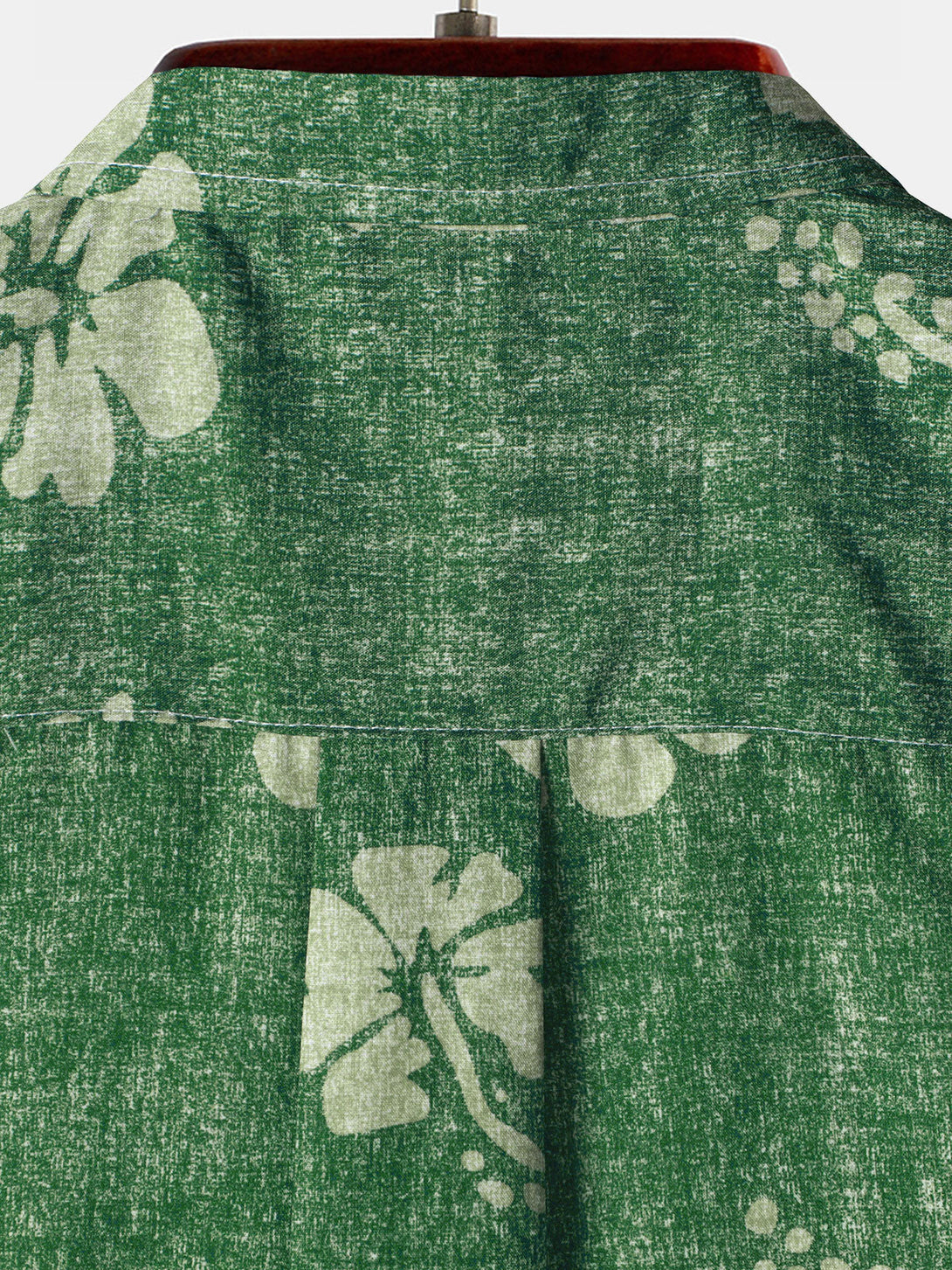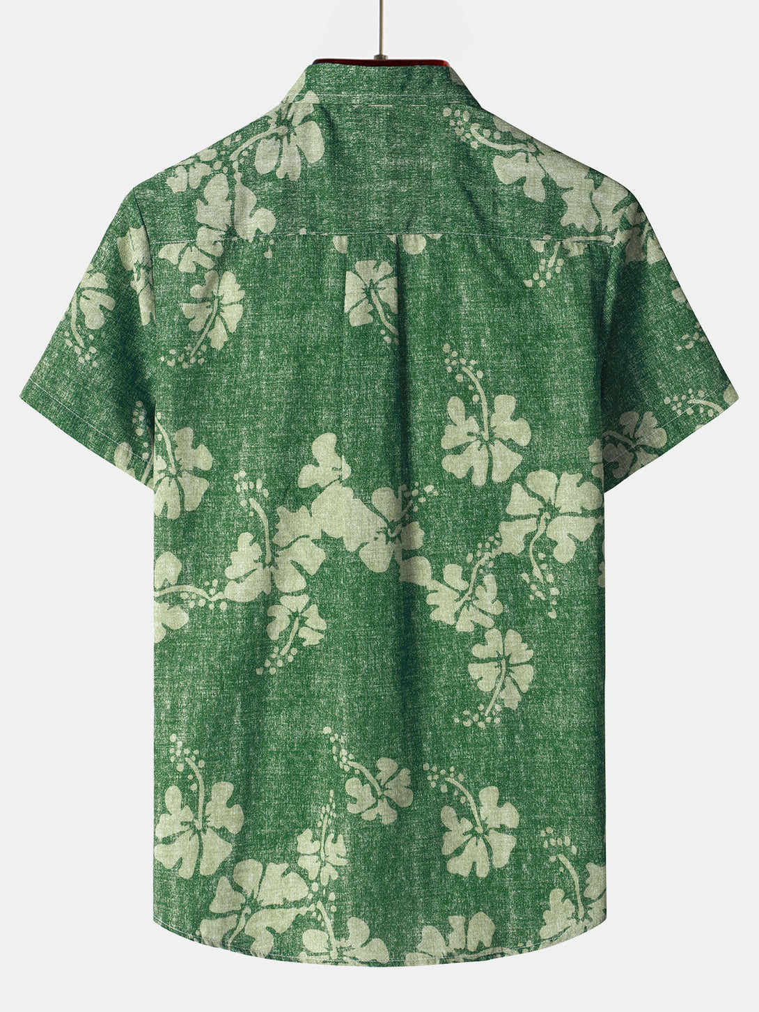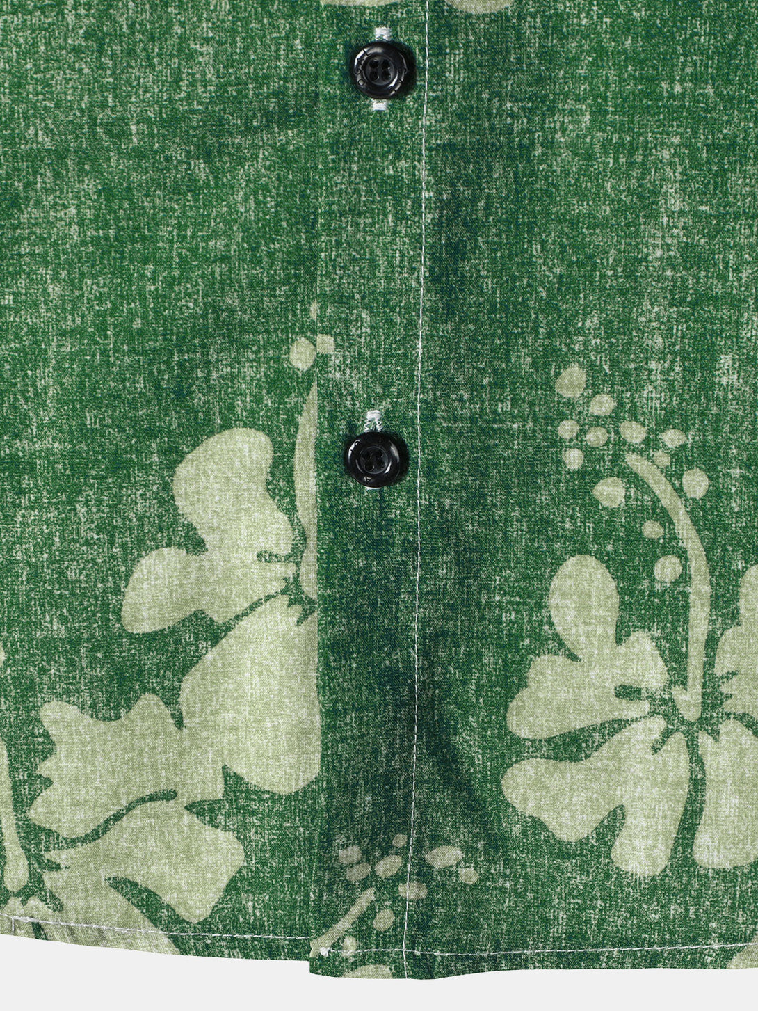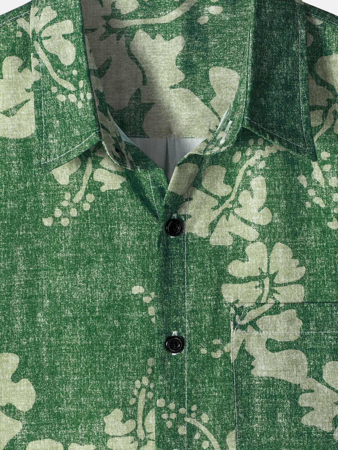 Men's Floral Hawaiian Shirt With Pockets And Green Buttons, Short Sleeves