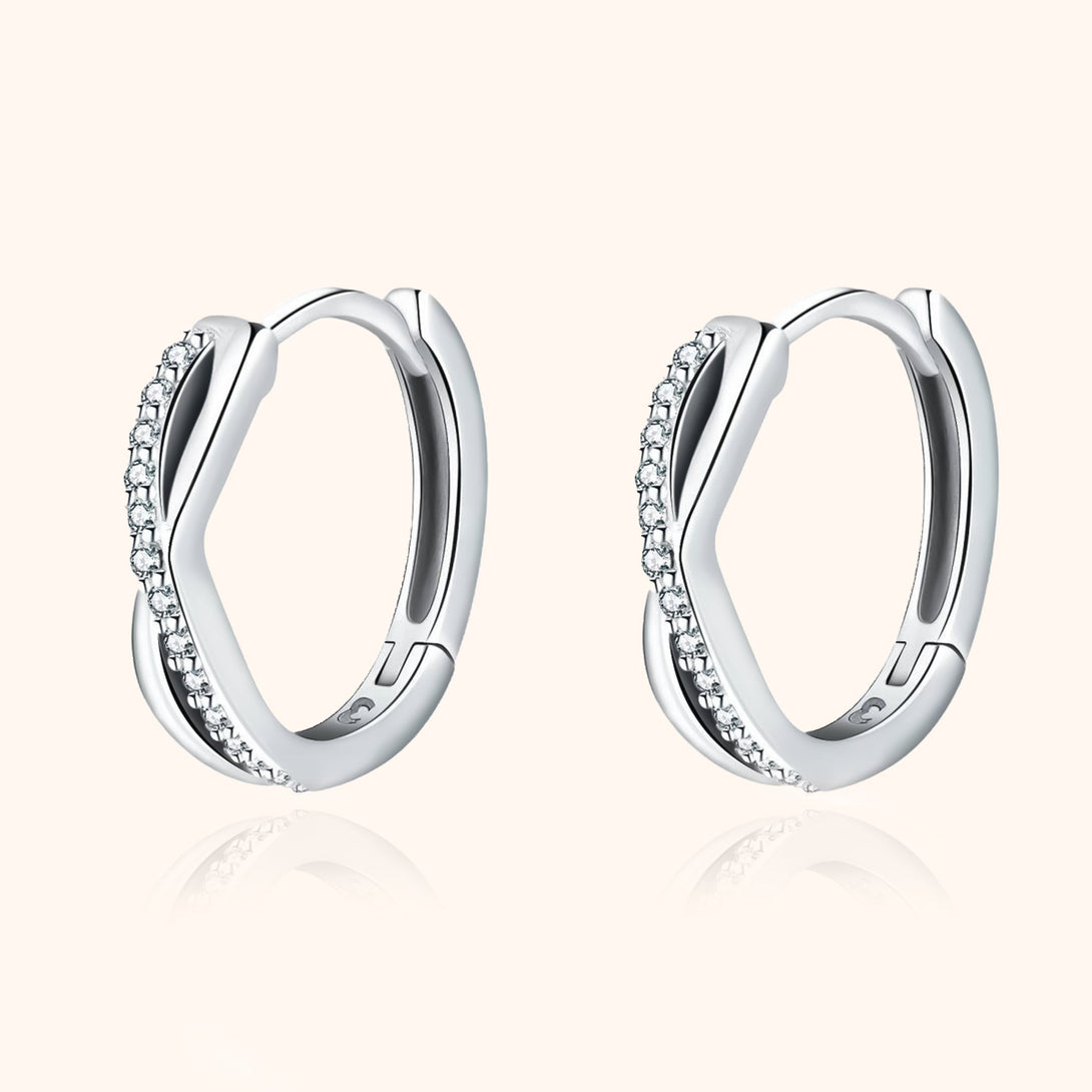 Elegant hoop earrings with intertwined lines and shiny zircons, made with sterling silver (S925). < /p>